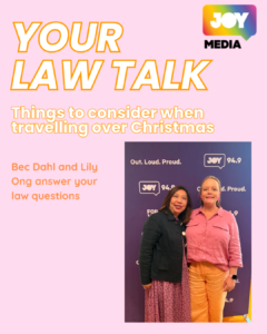 Partner Bec Dahl speaks on JOY Drive 94.9 with Host Warren Andrew and special guest Immigration Lawyer Lily Ong to chat about things to consider when travelling at Christmas. Listen to the episode here